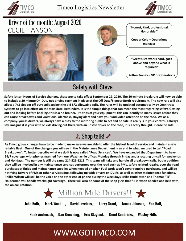 Timco Driver of the Month